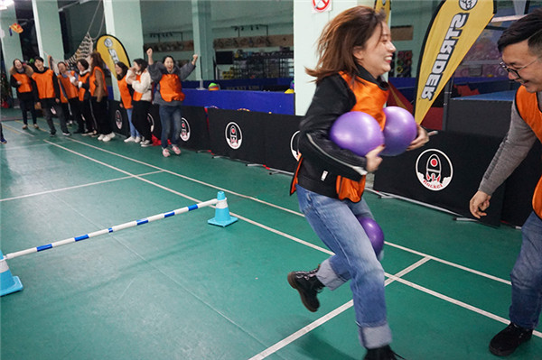 “企鵝漫步”接力 團(tuán)隊(duì)越來(lái)越默契 “加油”、“穩(wěn)住”、“漂亮” 隊(duì)員之間氣氛越來(lái)越融洽