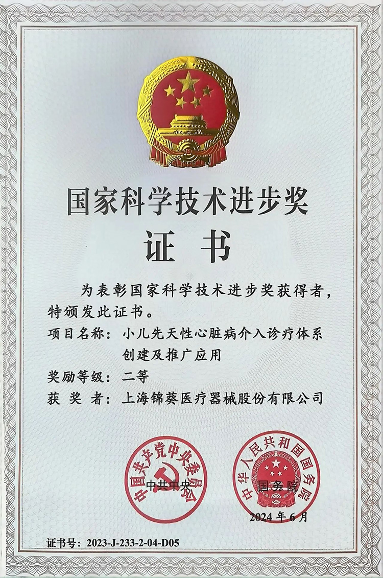6月24日,全國(guó)科技大會(huì)、國(guó)家科學(xué)技術(shù)獎(jiǎng)勵(lì)大會(huì)、兩院院士大會(huì)在京召開。會(huì)上公布了2023年度國(guó)家科學(xué)技術(shù)獎(jiǎng)獲獎(jiǎng)名單。其中,創(chuàng)投集團(tuán)被投企業(yè)上海錦葵醫(yī)療器械股份有限公司(以下簡(jiǎn)稱“錦葵醫(yī)療”)參與完成的“小兒先天性心臟病介入診療體系創(chuàng)建及推廣應(yīng)用”項(xiàng)目榮獲國(guó)家科學(xué)技術(shù)進(jìn)步獎(jiǎng)二等獎(jiǎng)!
